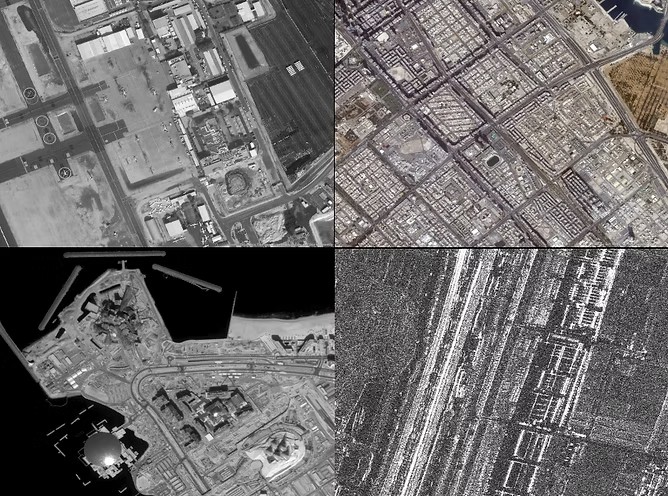 光学遥感平面图、立体图,SAR图,红外遥感图。